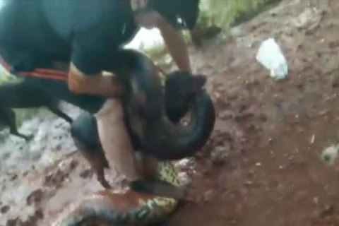 Ciclistas salvam cachorro de ataque de sucuri em Jaborandi, SP