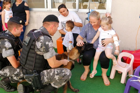Equipe Choque/K9 do 1° BPM visita Hospital da Criança em Ponta GRossa