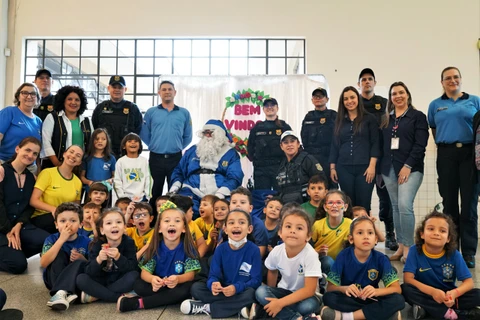 'Guarda Noel' leva a alegria do Natal para alunos da Escola Municipal Djalma de Almeida Cesar
