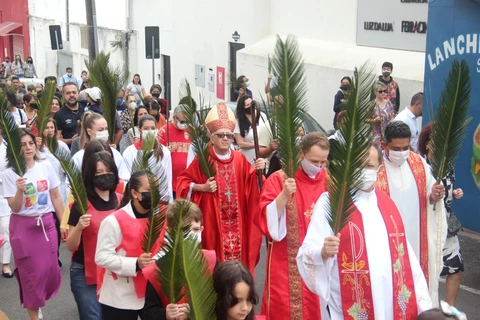 Bispo Dom Sergio acompanha procissão do Domingo de Ramos em PG