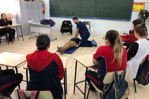 Servidores de escolas municipais passam por treinamento para prestar primeiros-socorros