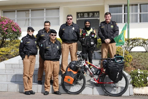 Polícia Militar recebe visita do aventureiro Vinícius da Silva