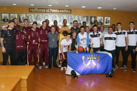 Rangel recebe os campeões paranaenses do basquete e vôlei