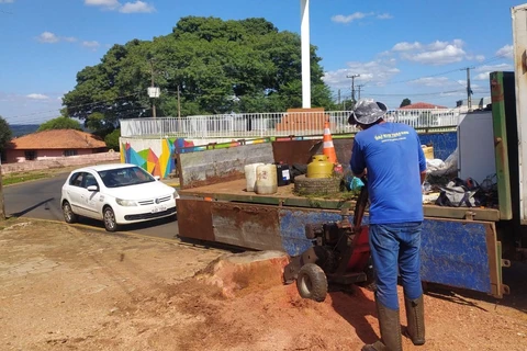 Secretaria de Obras inicia trabalho de arranque de tocos de árvores em calçada