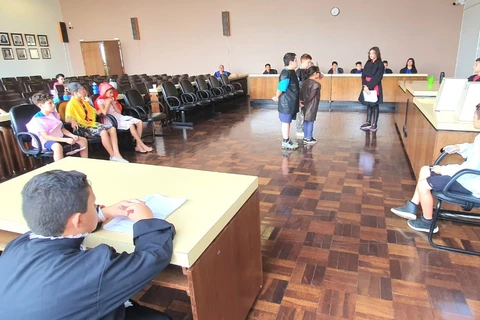 Julgamento do 'Lobo Mau' mobiliza alunos no Fórum Municipal de PG