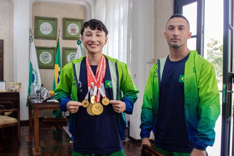 Prefeita e secretário recebem campeões e medalhistas dos JOJUPs