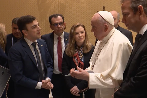 Aliel entrega homenagem em audiência com Papa Francisco