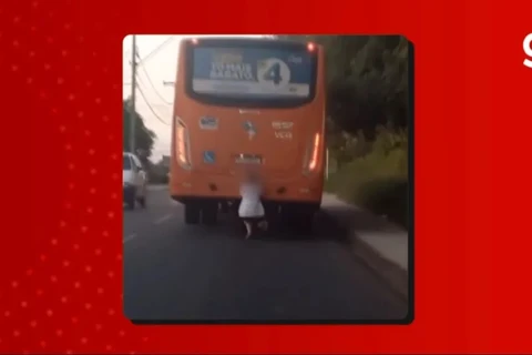 Criança se arrisca e fica pendurada na traseira de ônibus em movimento, em Ponta Grossa