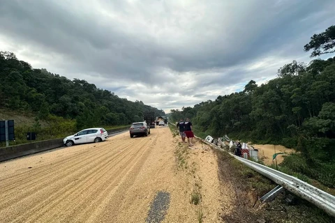 Motorista morre após caminhão carregado com soja tombar na BR-376, em Ponta Grossa; pista foi interditada