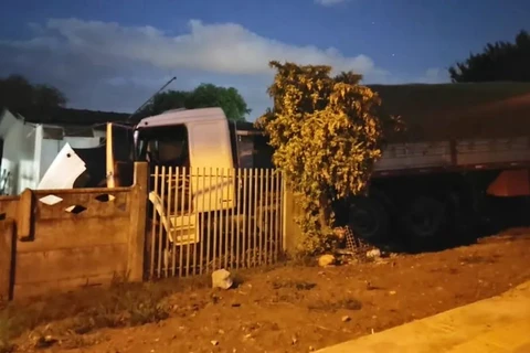 Caminhão desgovernado invade quintal de casa em Ponta Grossa