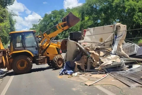 População saqueia carga de equipamentos de energia solar em caminhão tombado no Paraná