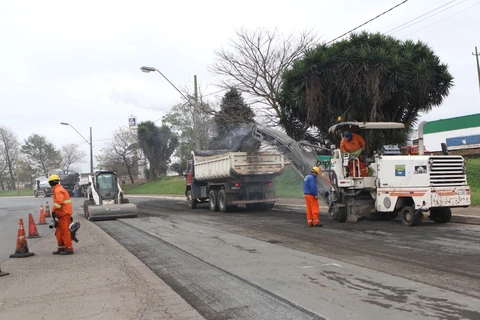 Prefeitura revitaliza pavimento no Vendrami, trevo de entrada da cidade