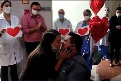 Ao vencer a Covid-19, vendedor pede namorada em casamento no hospital: 'É o amor. Amor de uma vida nova, casamento novo, vida nova'
