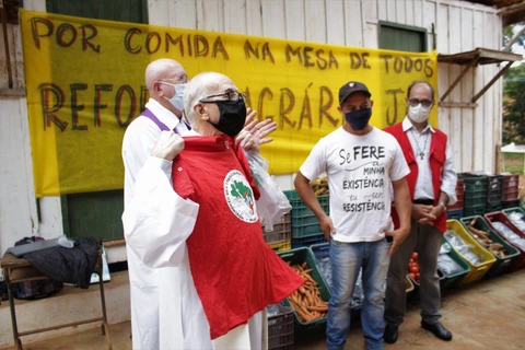 Dom Sérgio abençoa alimentos doados pelo MST em Ponta Grossa; é "uma aula de solidariedade"