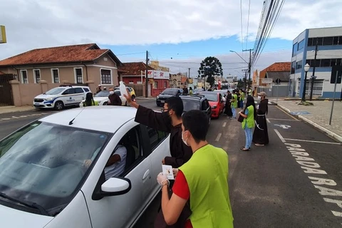 Freis capuchinhos fazem tradicional bênção de carros em Ponta Grossa