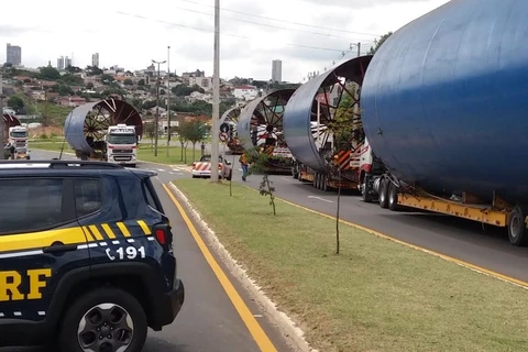 Escolta de peças gigantes deixa trânsito lento na BR-376, em Ponta Grossa