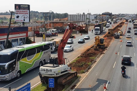Escavadeira enrosca em rede elétrica, e trecho da BR-373 é interditado, em Ponta Grossa