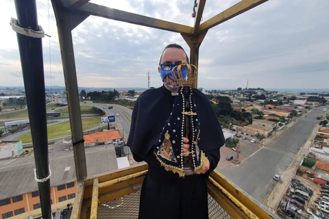 Do alto de uma torre de 37 metros, padre consagra PG a Nossa Senhora Aparecida