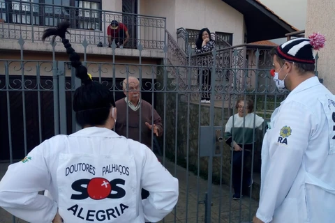 Casa de repouso instala cortina do abraço para aproximar moradores e familiares em Londrina
