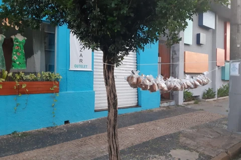 Voluntários penduram lanches em varal para ajudar moradores de rua de Limeira durante pandemia