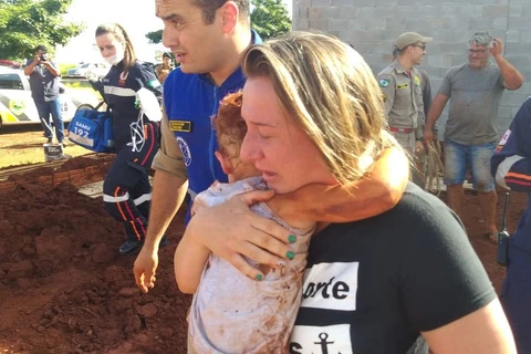 Criança cai em buraco de 5 metros de profundidade e é resgatada sem nenhum ferimento em Maringá