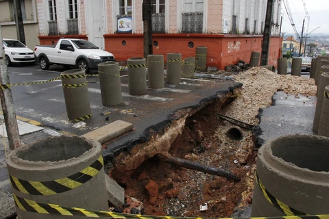 Prefeitura de Ponta Grossa faz reparos em tubulações da Rua 7 de Setembro, no Centro