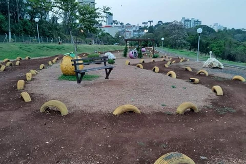 Brinquedos infantis da Praça do Pôr do Sol são revitalizados após ação de vândalos