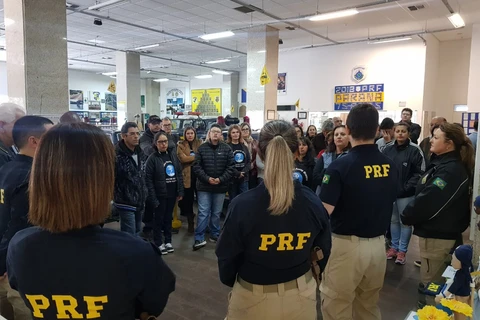 Alunos com deficiência visual visitam sede da PRF em Curitiba