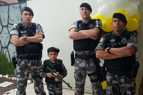 Admirador da Polícia Militar, menino recebe visita da PM em seu aniversário