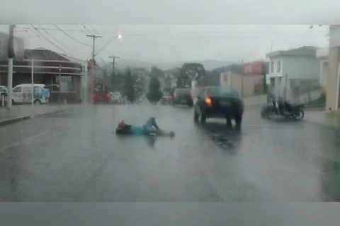 Imagem de homem tomando banho de chuva em avenida de Piraí do Sul toma conta das redes sociais