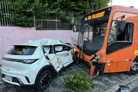 Carro é arrastado por ônibus após colisão e motorista fica preso às ferragens em Curitiba