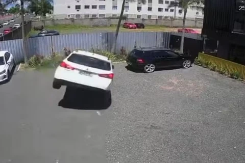 Motorista filmado derrubando árvore e muro e batendo em quatro veículos após 'voar' com carro em Ponta Grossa está internado no hospital