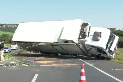 Caminhão cai em barranco após ser destombado da BR-376, em Ponta Grossa