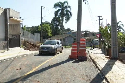 Após instalar poste no meio da rua, Copel coloca novo ao lado do antigo para iniciar deslocamento da rede de energia