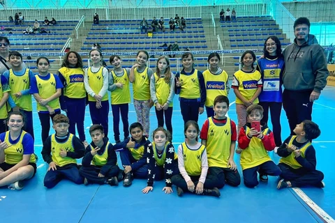 Alunos do Projeto Viva Vôlei visitam a Arena Multiuso