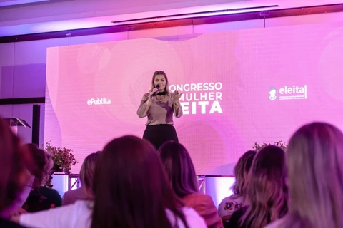 Aline Sleutjes dá show em palestra no 1º Congresso Mulher Eleita