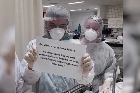 Profissional anuncia recuperação de paciente com Covid em cartaz e emociona: 'Vamos respirar agora fora desse tubo?'