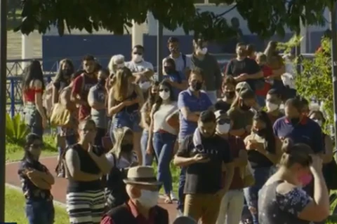 Trabalhadores de farmácias formam fila para receber vacina contra a Covid-19 em Ponta Grossa