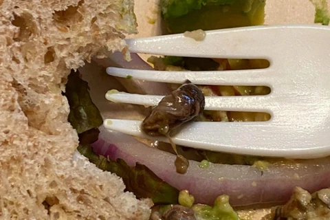 Mulher encontra caramujo transmissor de meningite ao morder sanduíche