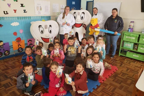 Pintando um Sorriso entrega kit de higiene bucal nas escolas