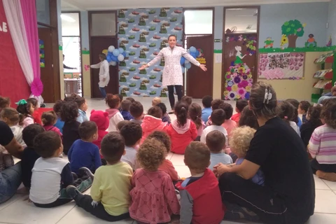 Crianças do CMEI Cacilda assistem a teatro sobre Saúde Bucal