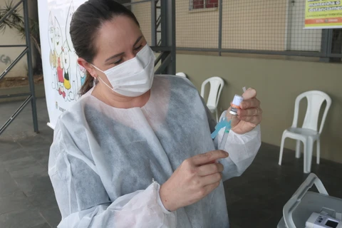 Idosa de 81 anos recebe vacinas contra a Covid-19 de fabricantes diferentes, em Ponta Grossa