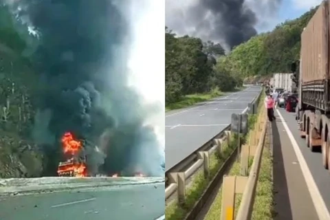 Caminhão de diesel explode em acidente com três caminhões e BR-376 é interditada