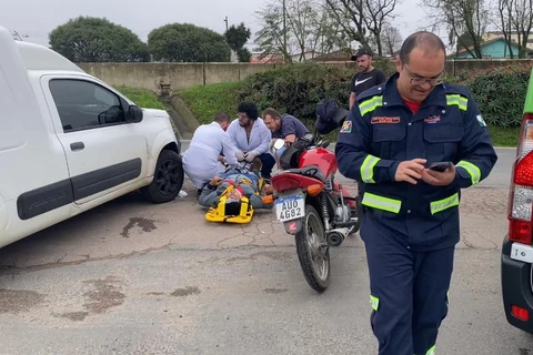 Motociclista fica ferido durante manobra em pátio de posto em Carambeí
