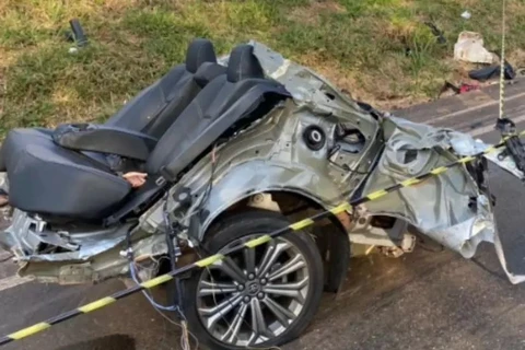 Carro parte ao meio em acidente com van e caminhão; BR-376 fica interditada