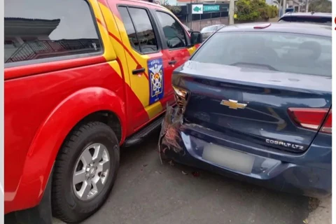 Viatura dos bombeiros bate em três veículos estacionados em Ponta Grossa