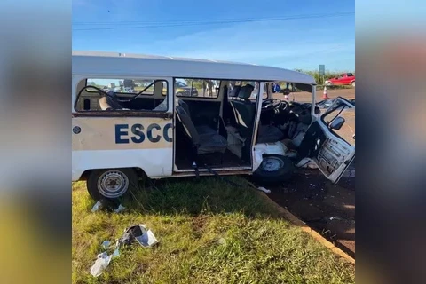 Motorista morre e 4 crianças ficam feridas em acidente com Kombi escolar