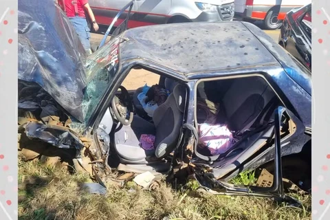 Quatro crianças ficam feridas e mãe fica presa às ferragens após carro da família bater de frente com outro, em Guarapuava