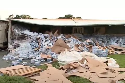 Caminhão de cerveja é saqueado após tombar no Paraná