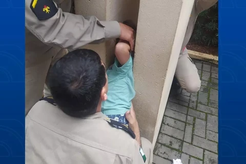 Bombeiros resgatam menino de 5 anos que ficou preso entre colunas de concreto, em Paranavaí